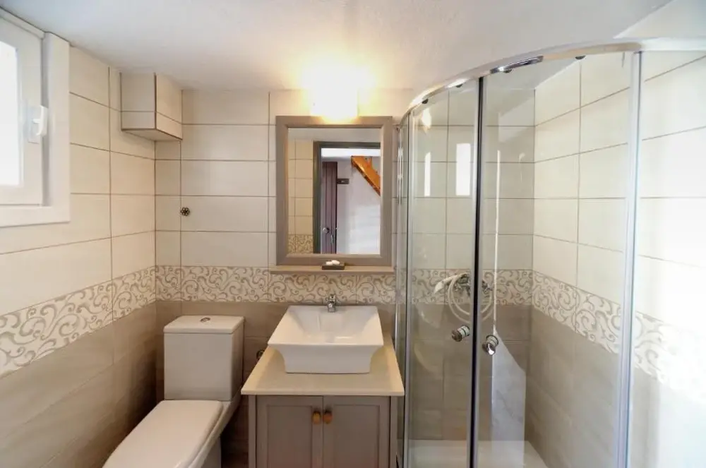 Ontbrekende doucheteller. Ik zou mevrouw Machi willen voorstellen om koffie- of theesachets te maken (de machines zijn er). Zeer lawaaierige airconditioner.